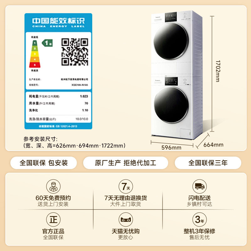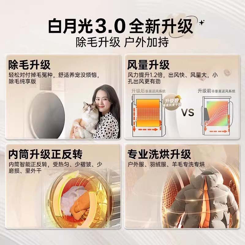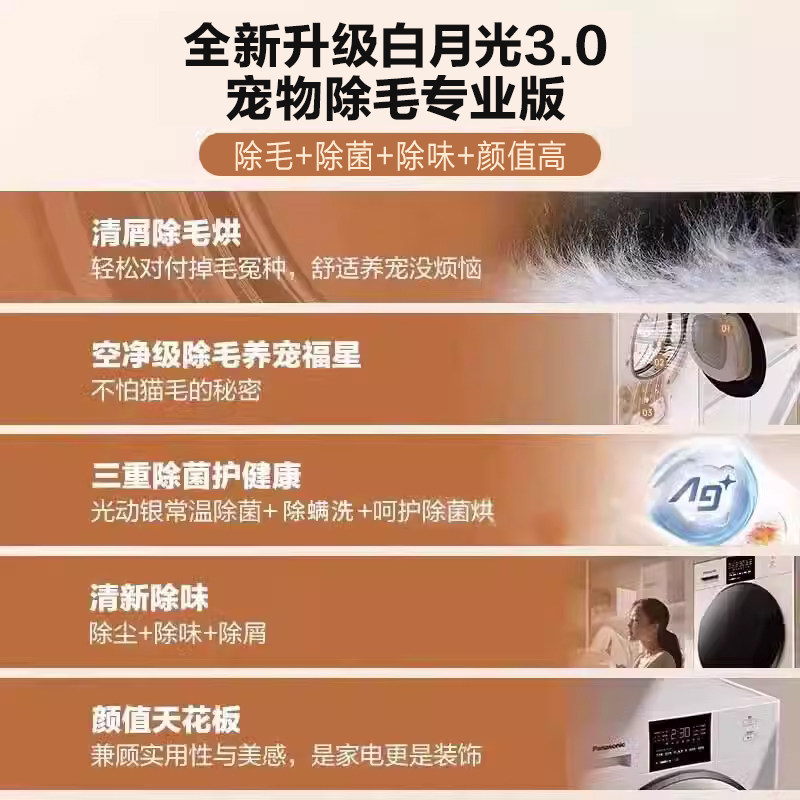 [除毛升级]松下白月光3.0除菌洗烘套装10KG家用变频洗衣机干衣机