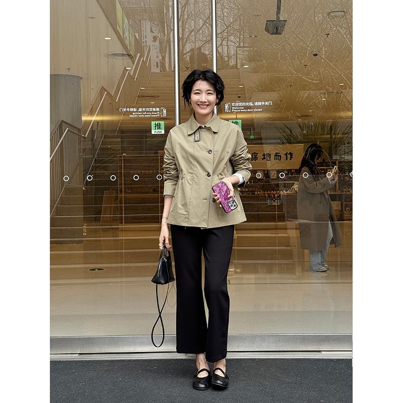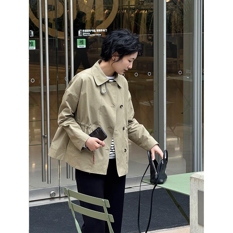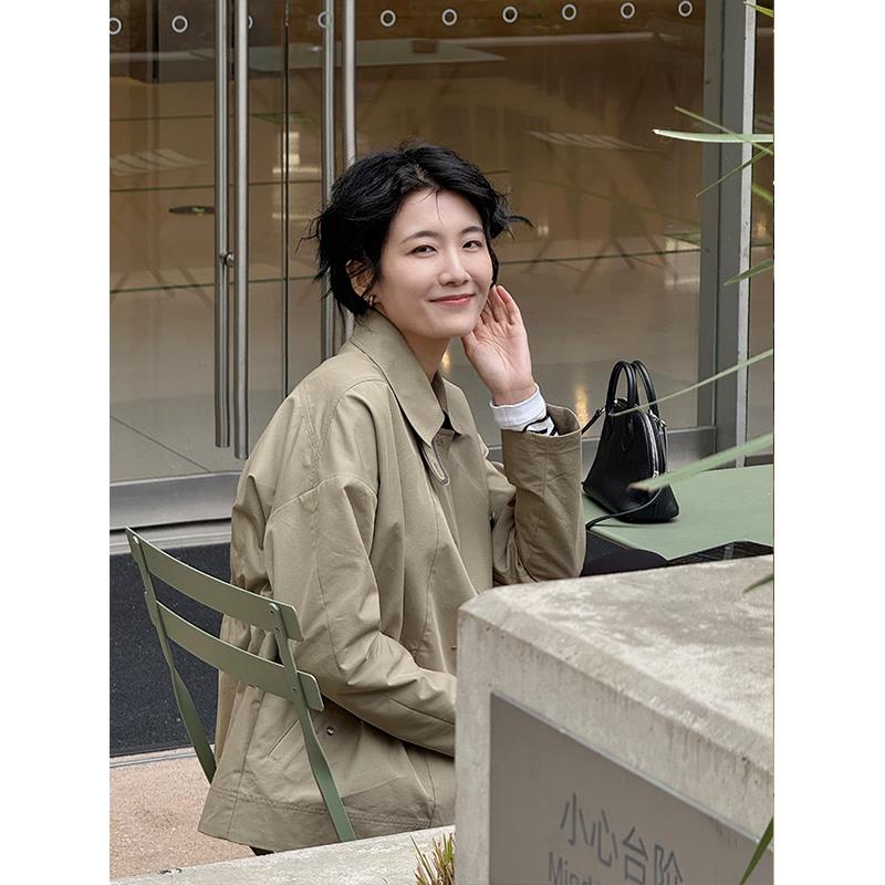 周浪清小个子短款收腰风衣女款2025新款春季翻领夹克宽松工装外套