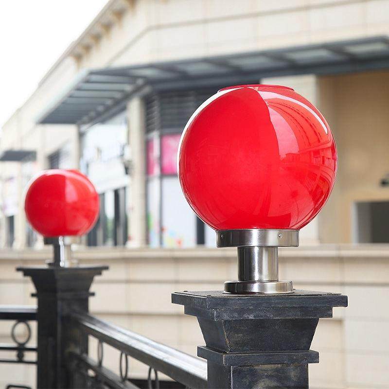 大门灯红色球形柱头灯红球围墙红光LED圆球灯户外防水太阳能光控