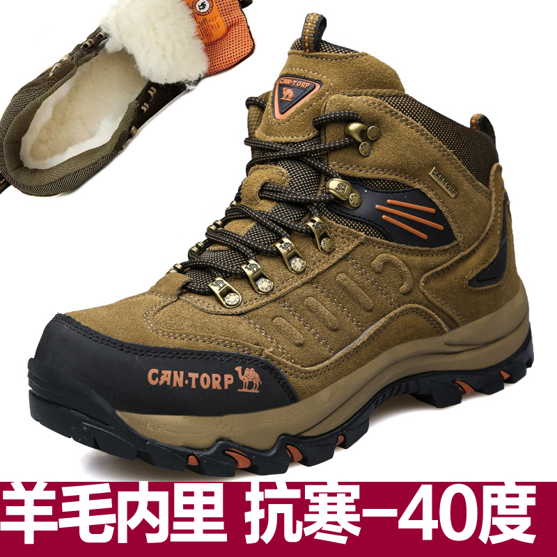 骆驼男鞋冬季高帮户外登山鞋防水防滑加绒加厚羊毛保暖棉鞋雪地靴