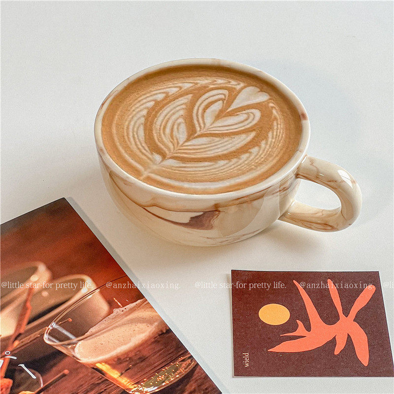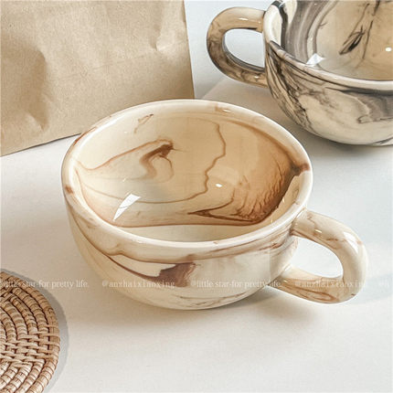 北欧ins风大理石纹陶瓷马克杯牛奶燕麦杯早餐杯韩风高级感咖啡杯