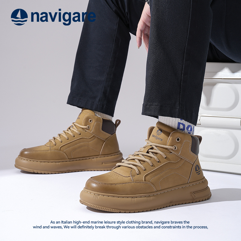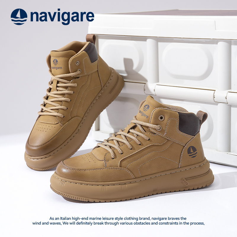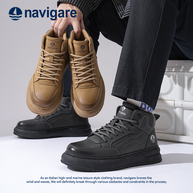 Navigare意大利小帆船男鞋2025春秋季新款男士板鞋高帮休闲运动鞋