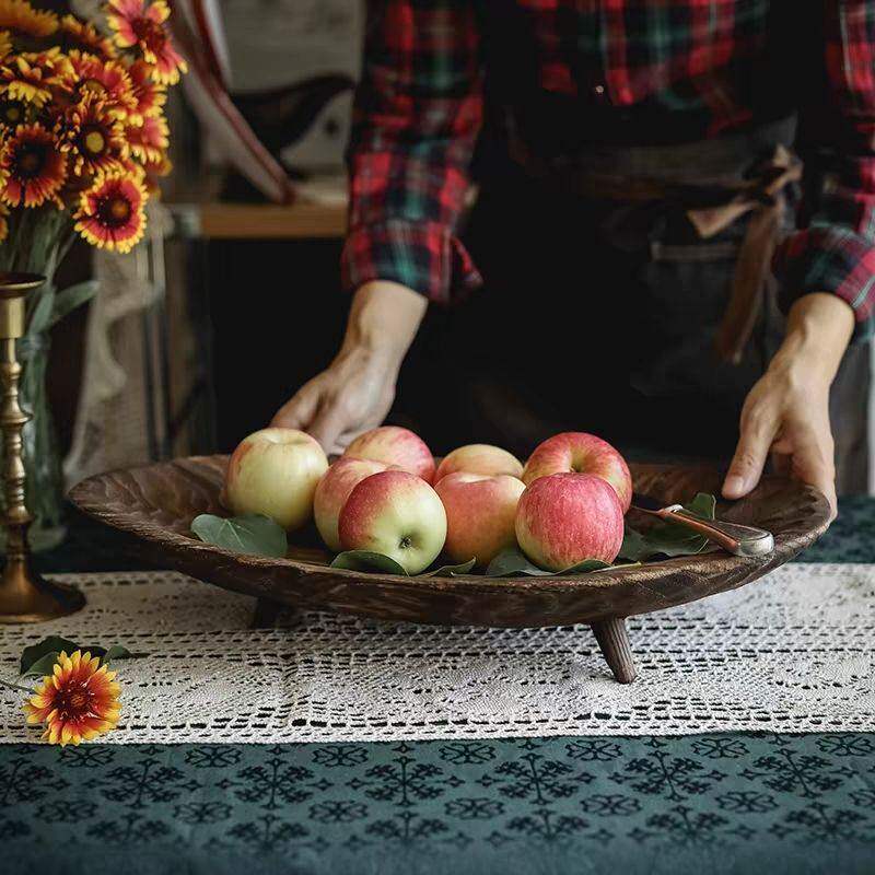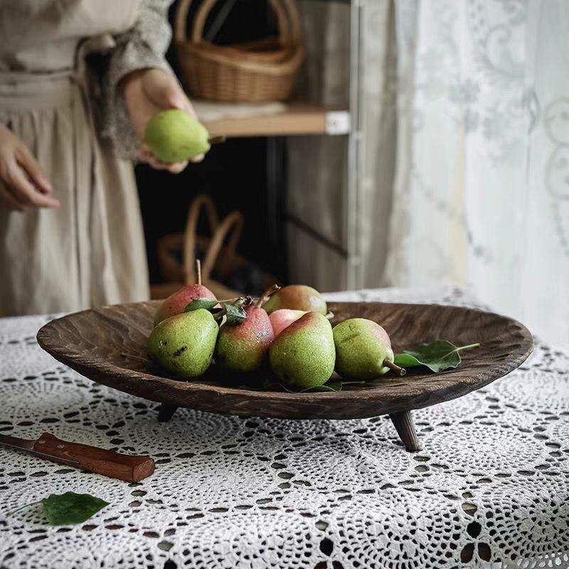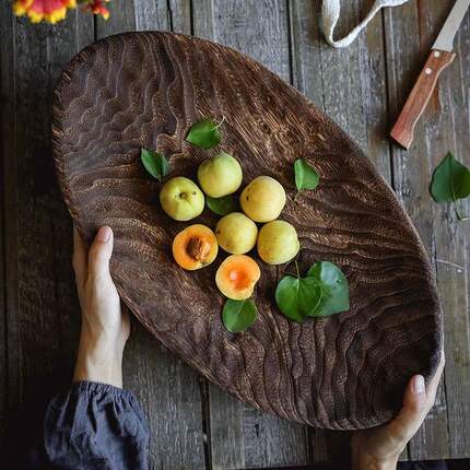 侘寂中古风实木果盘装饰摆件客厅茶几木质托盘民宿木盘收纳零食盘