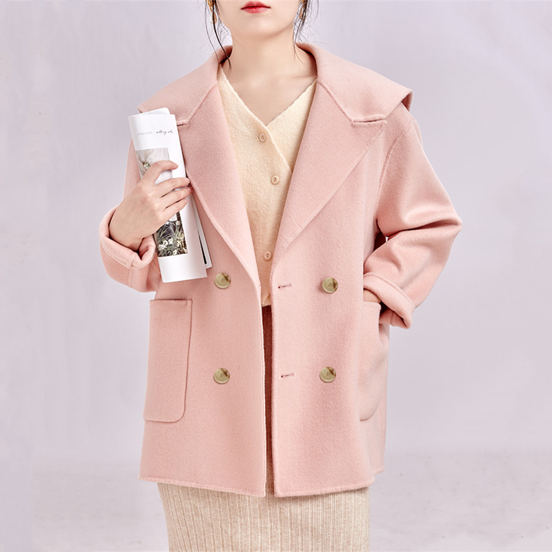 爱号双面羊绒短款大衣秋冬小个子时尚宽松显瘦高端气质毛呢外套女