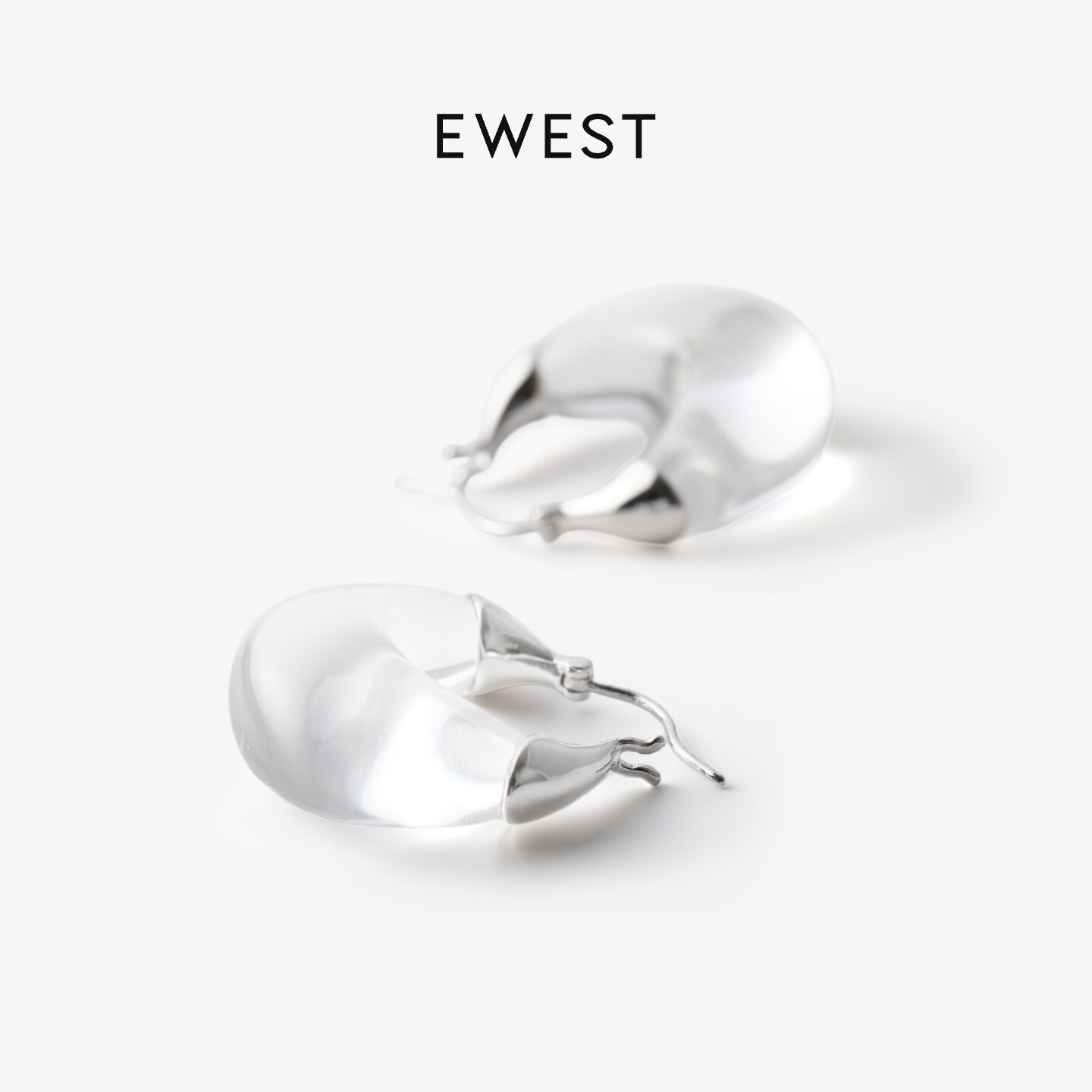 EWEST 新款时序流线水晶耳环女耳钉素银小耳环设计感耳饰高级饰品