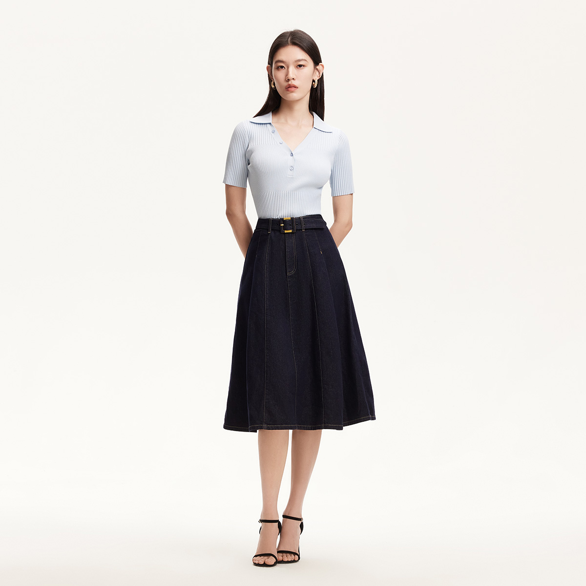 Vero Moda半身裙2025冬季新款含棉腰带装饰A字牛仔裙325437008