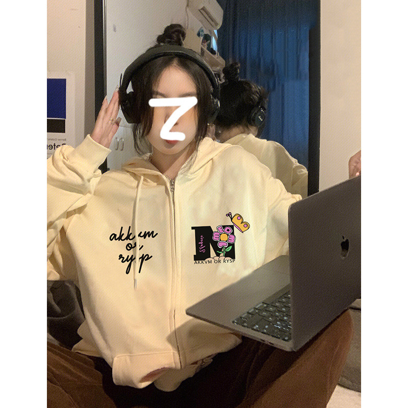 秋冬韩版ins加绒加厚卫衣女学生原宿bf风薄款宽松连帽拉链外套潮