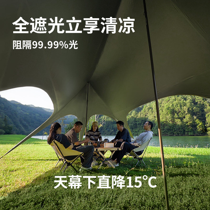 WOLFWALKER屋檐六爪天幕帐篷户外野露营全遮光防晒黑胶新式遮阳棚