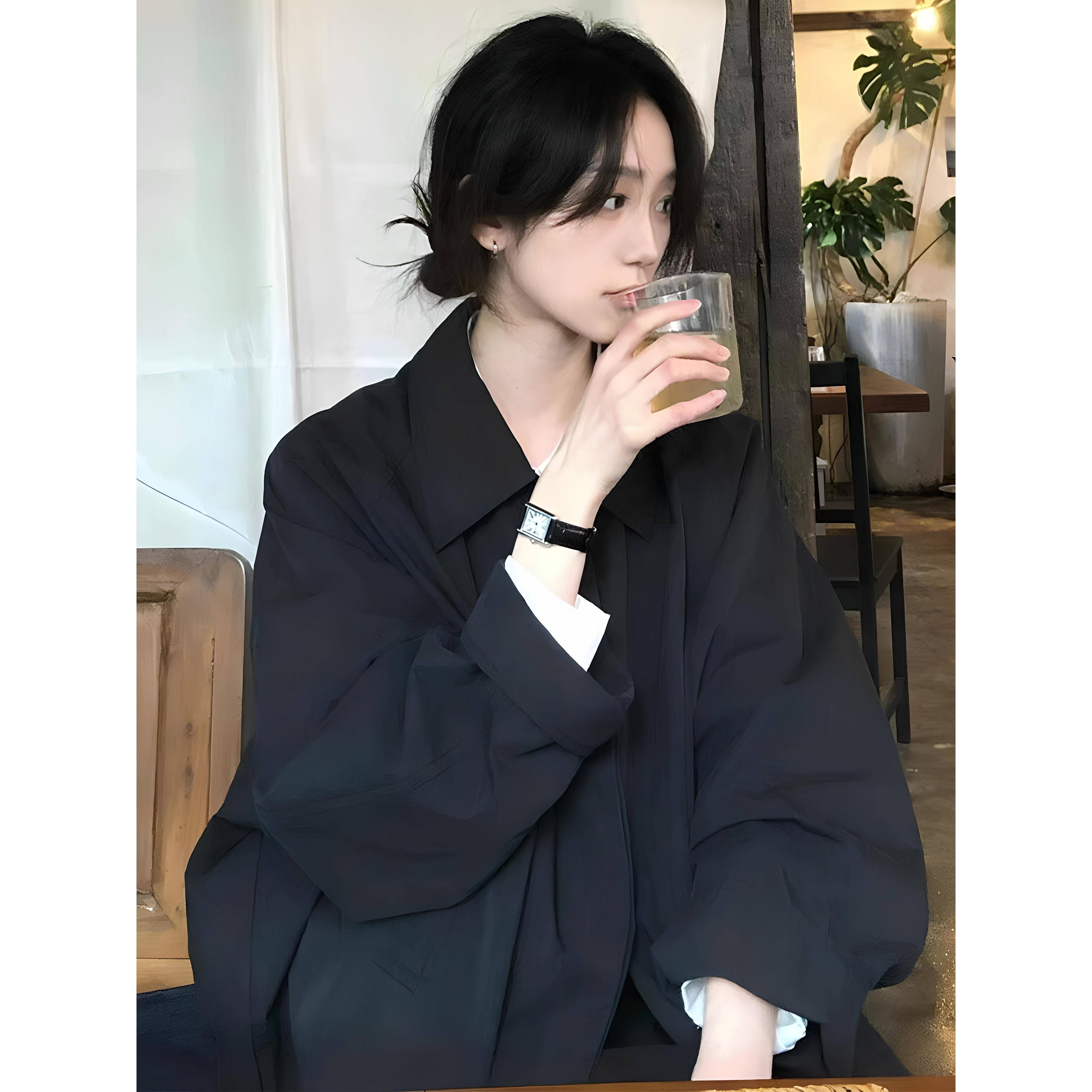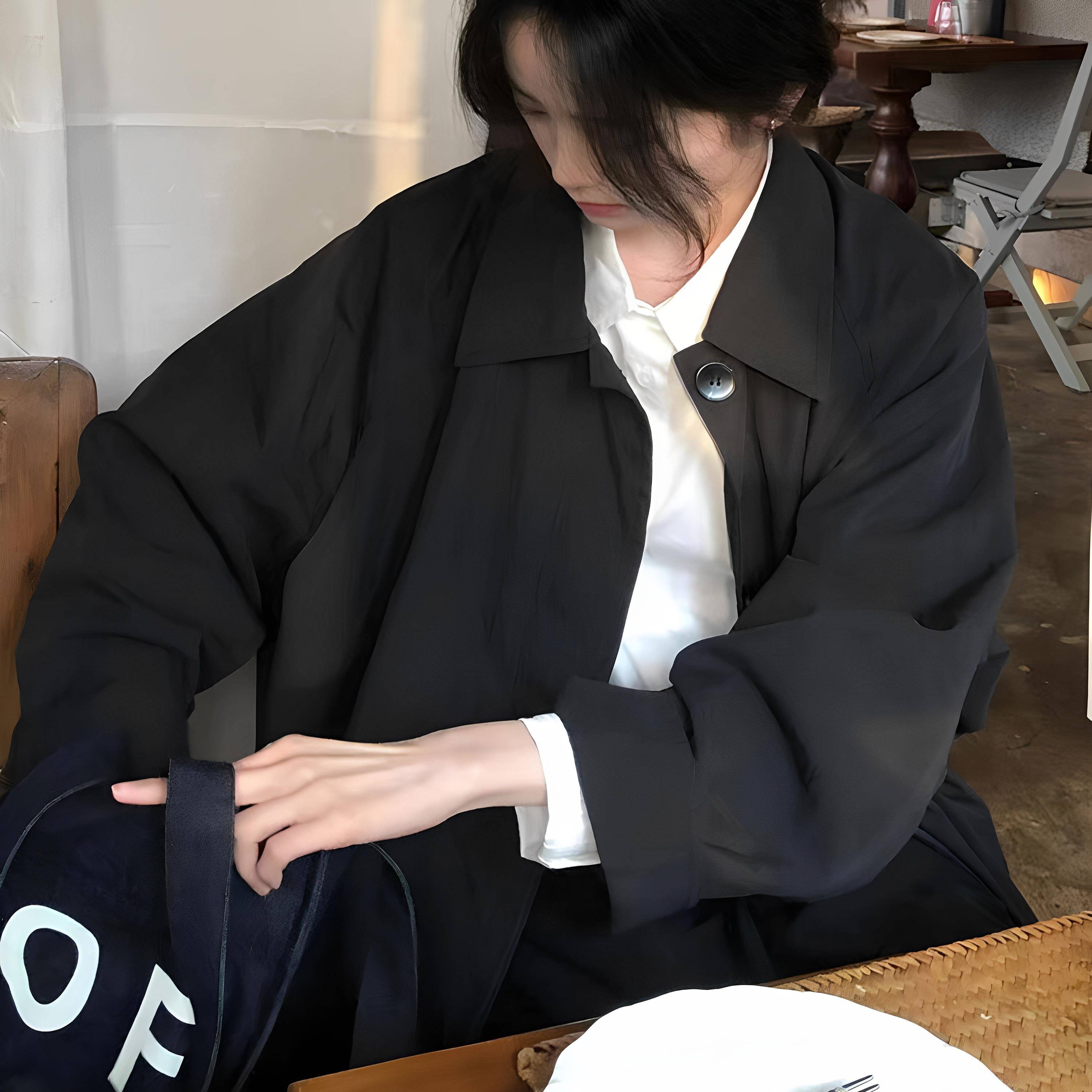 黑色风衣外套女2025秋季新款小个子中长款韩系日系休闲大衣巨好看