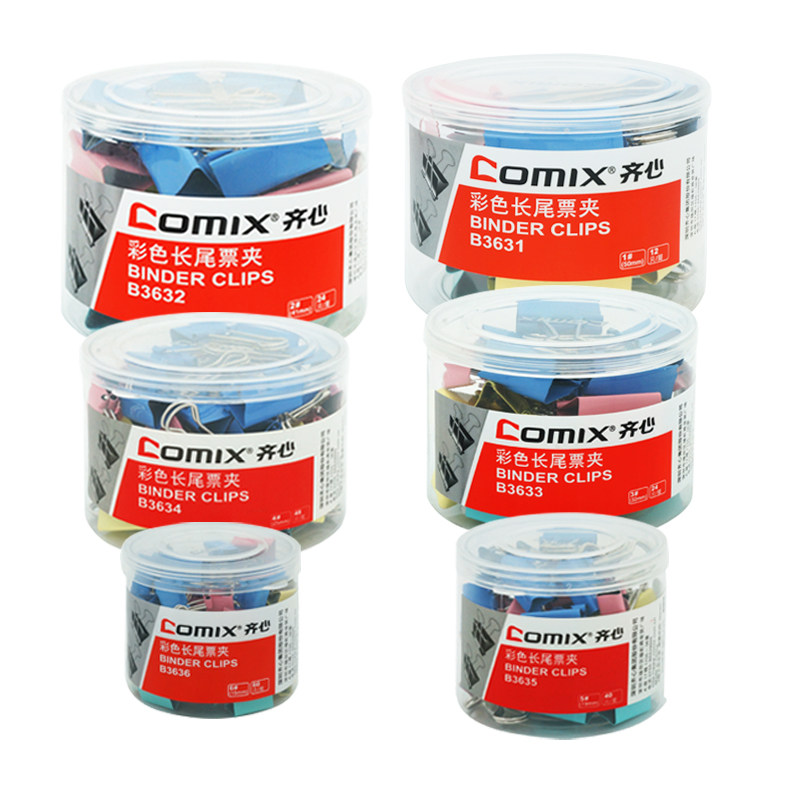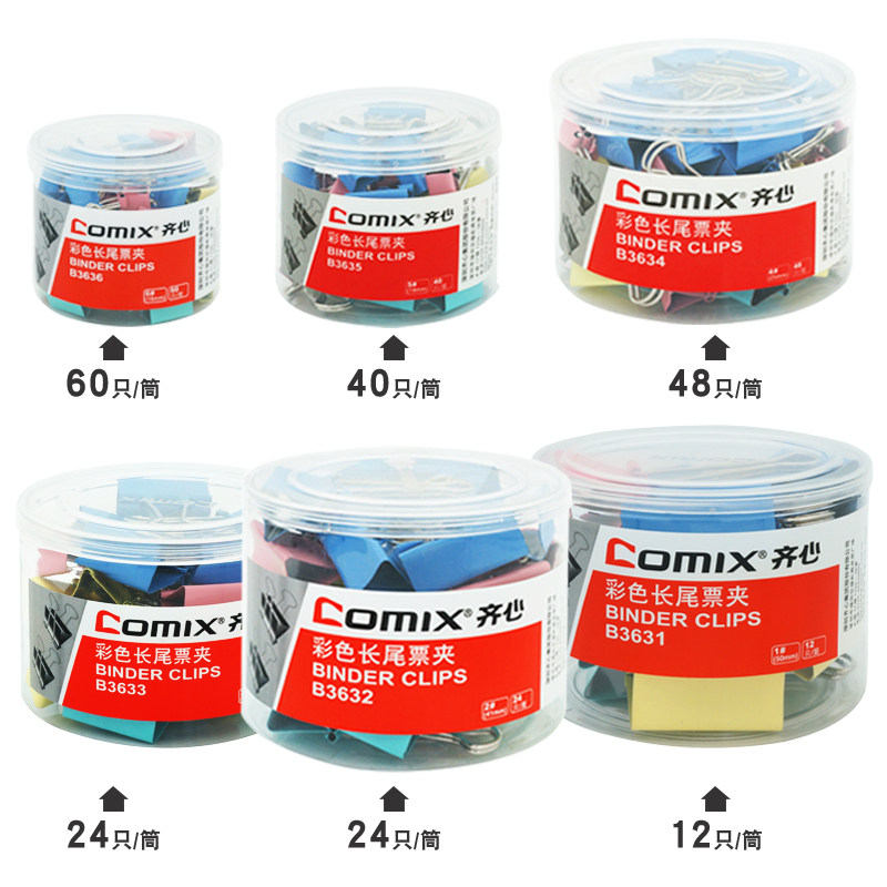 齐心彩色长尾夹混合装大号夹子文具小号多功能书夹子试卷夹燕尾夹凤尾夹文件夹子票夹办公用品金属小夹子固定