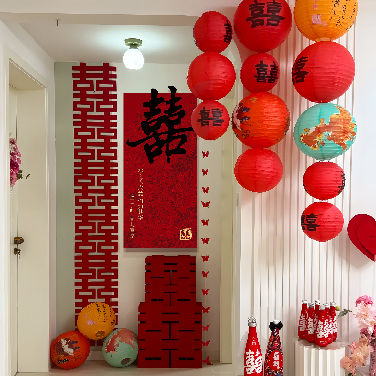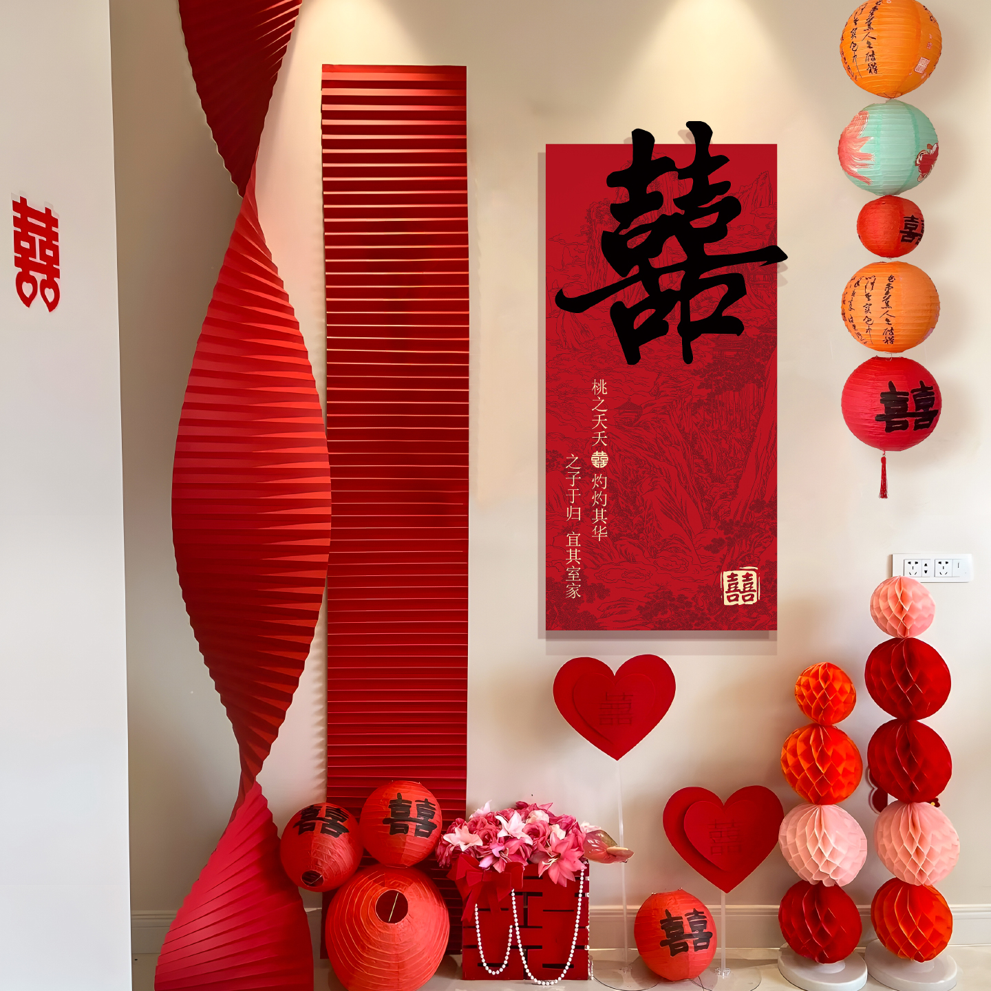 婚房布置套装女方房间背景墙面装饰结婚男方新房卧室拉花喜字KT板