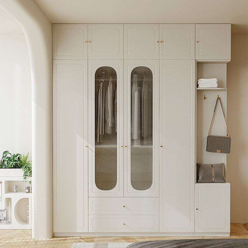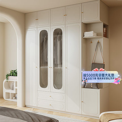 双虎轻奢现代简约衣柜家用卧室一门到顶组合柜四五六门衣橱23105