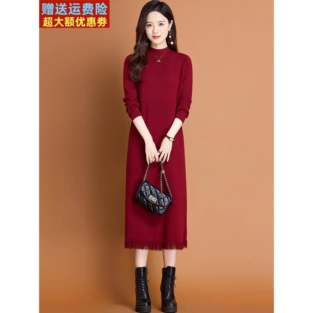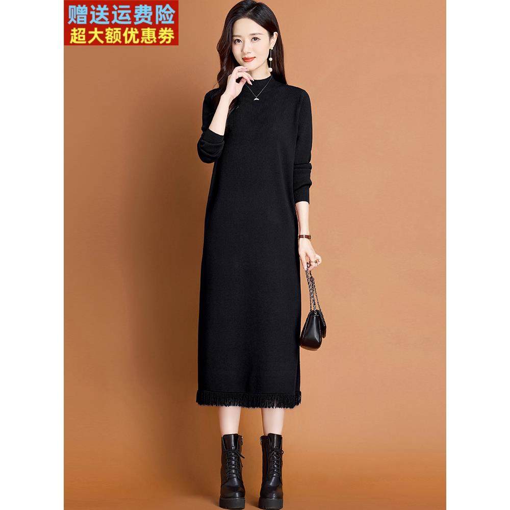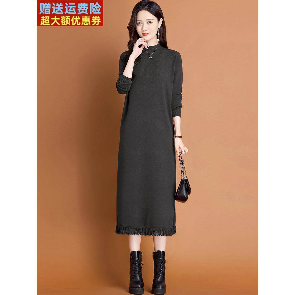流苏毛衣连衣裙女士中长款秋冬2025新款妈妈配大衣内搭针织打底衫