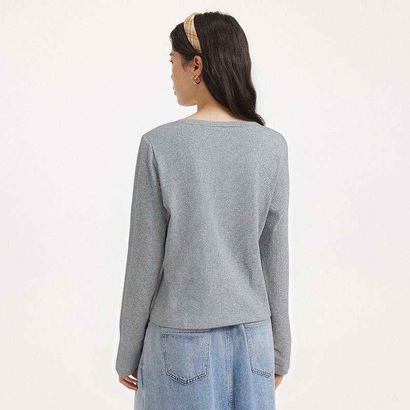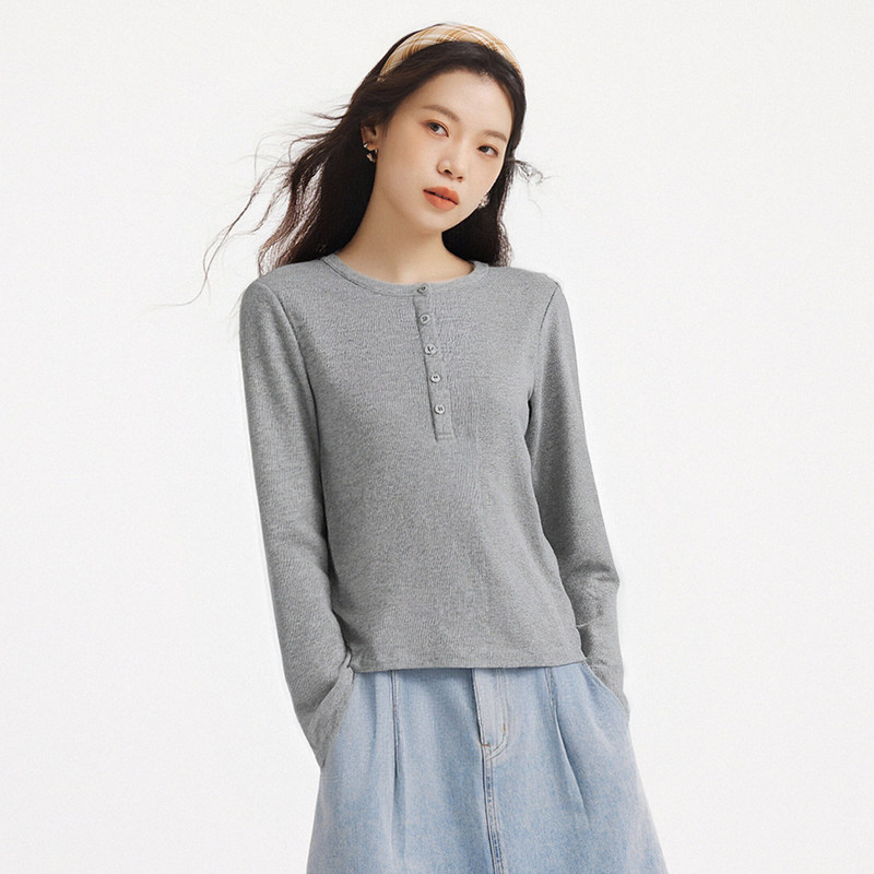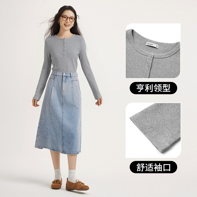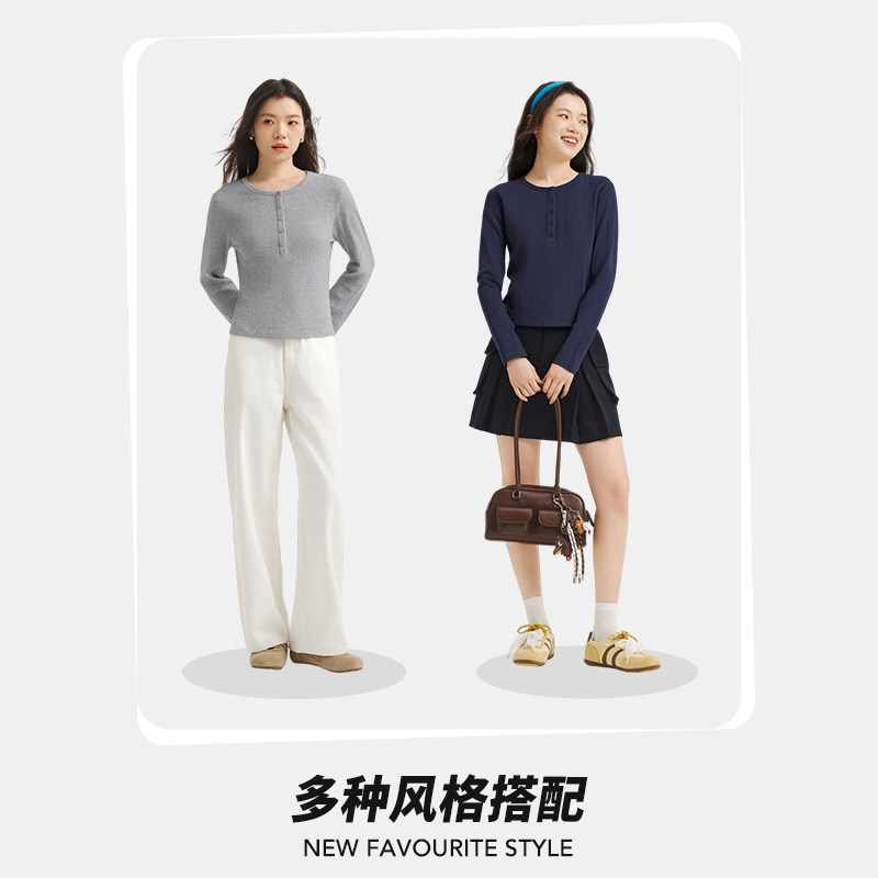 热风女士长袖T恤上衣2026年春季新款美式亨利衫长袖内搭打底衫