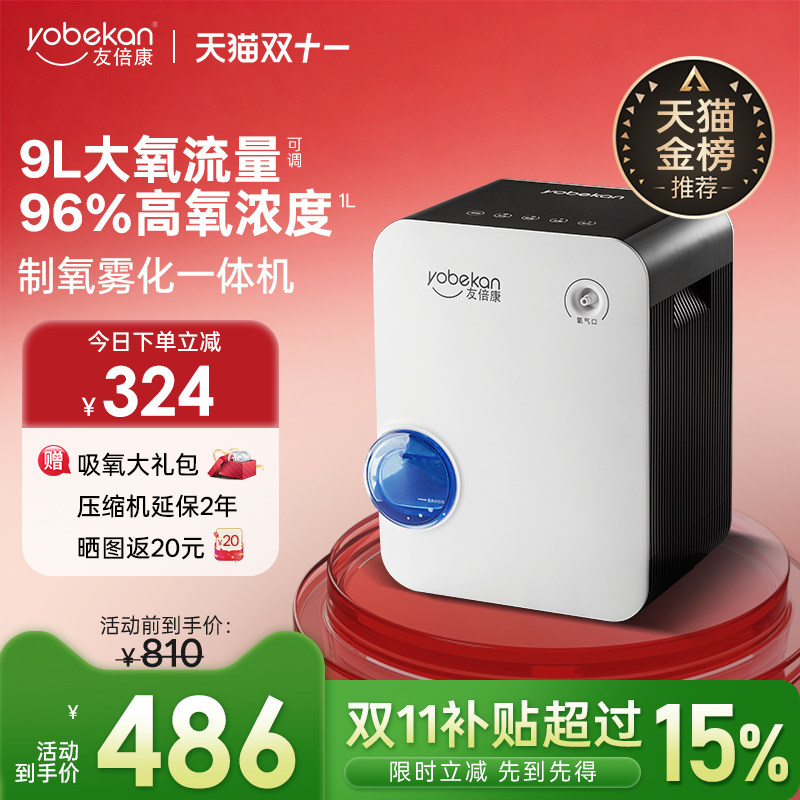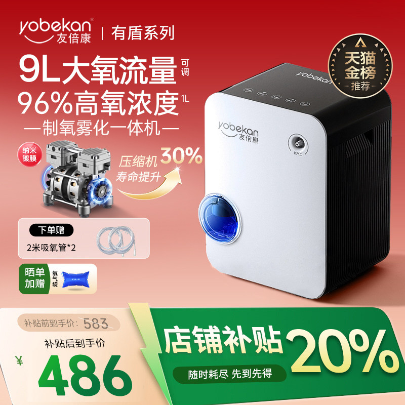 友倍康9L制氧机家用吸氧机老人家庭孕妇雾化一体氧气机小型便携式