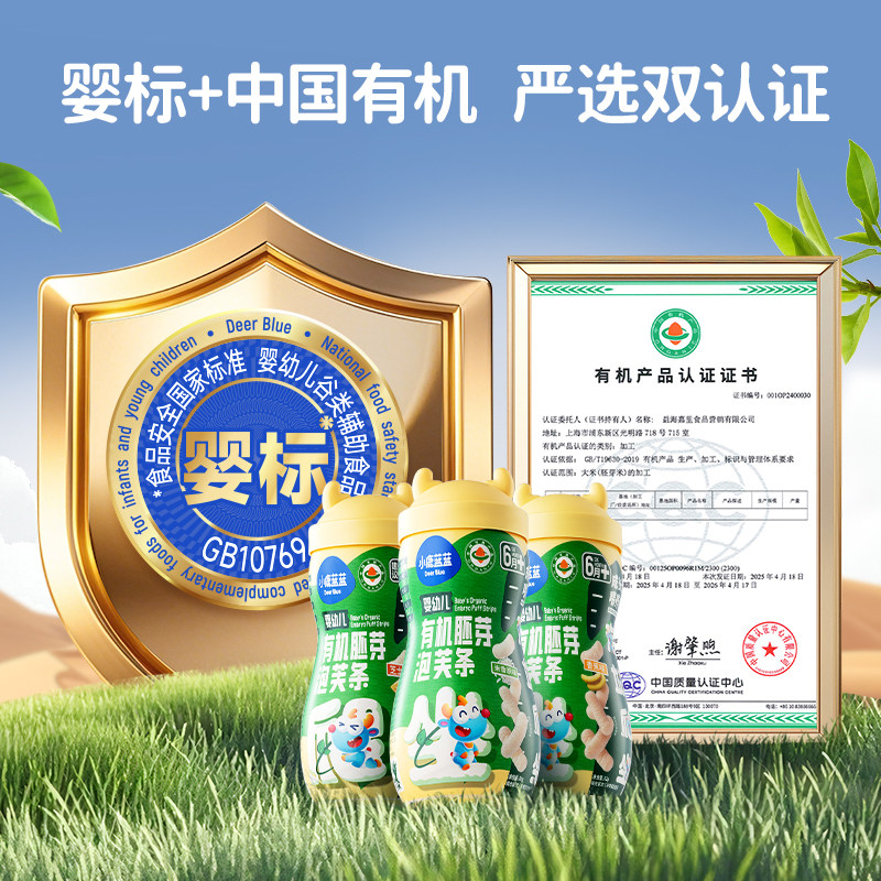 小鹿蓝蓝婴儿有机泡芙6月+手指泡芙条宝宝辅食营养健康宝宝零食