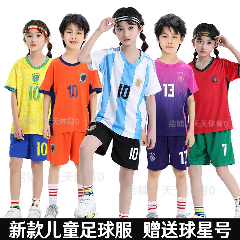 儿童足球服套装男女童比赛服装皇马巴萨C罗小学生球衣训练服队服