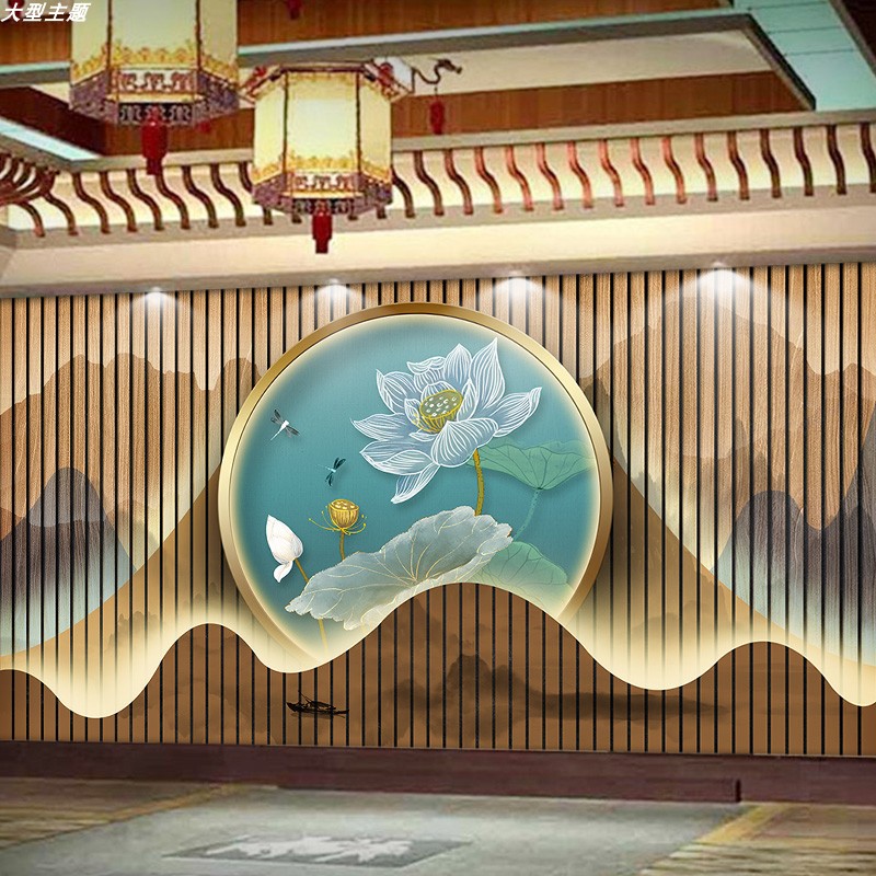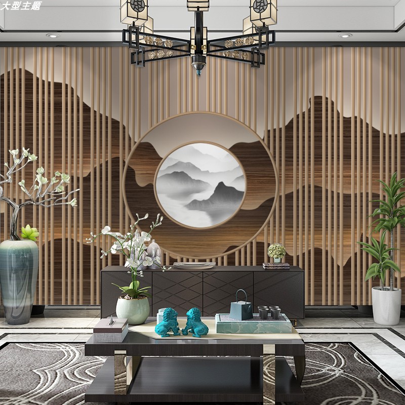 新中式禅意佛手墙纸客厅8d立体山水画佛堂背景墙装饰茶室茶舍壁纸