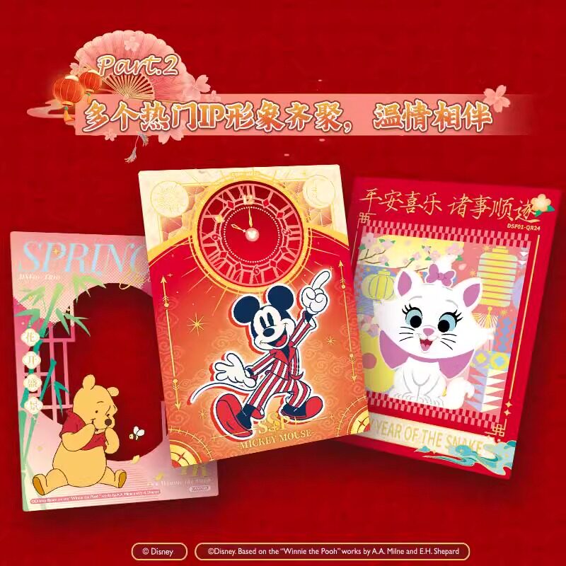 全新集卡社迪士尼正版新春特别版收藏卡片动漫盲盒周边米奇噗噗