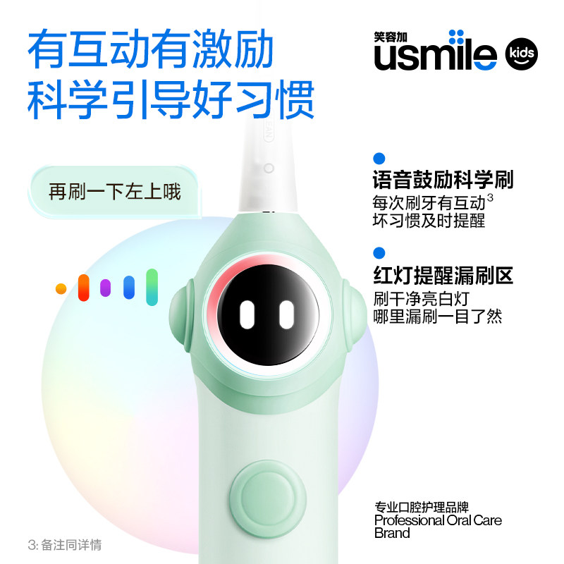笑容加usmile儿童电动牙刷自动声波3-15岁宝宝智能防蛀软毛刷Q20