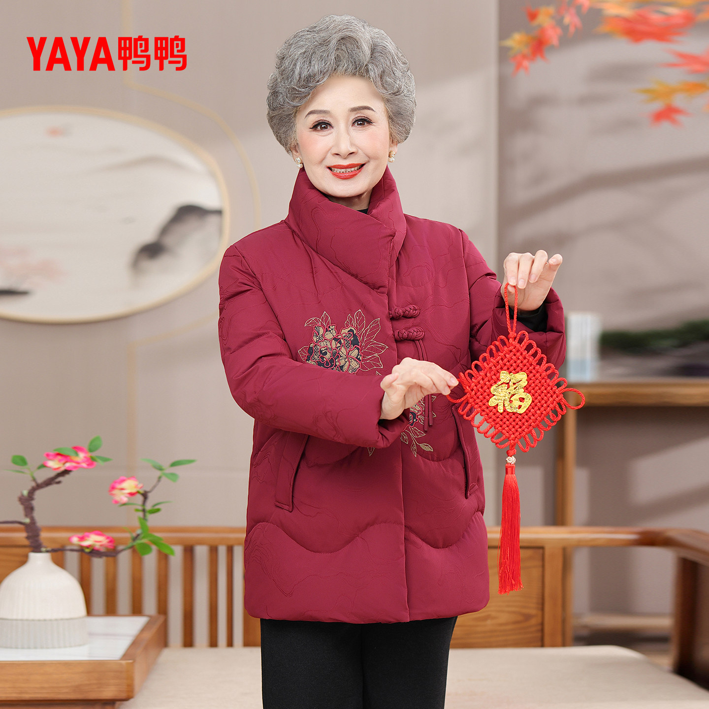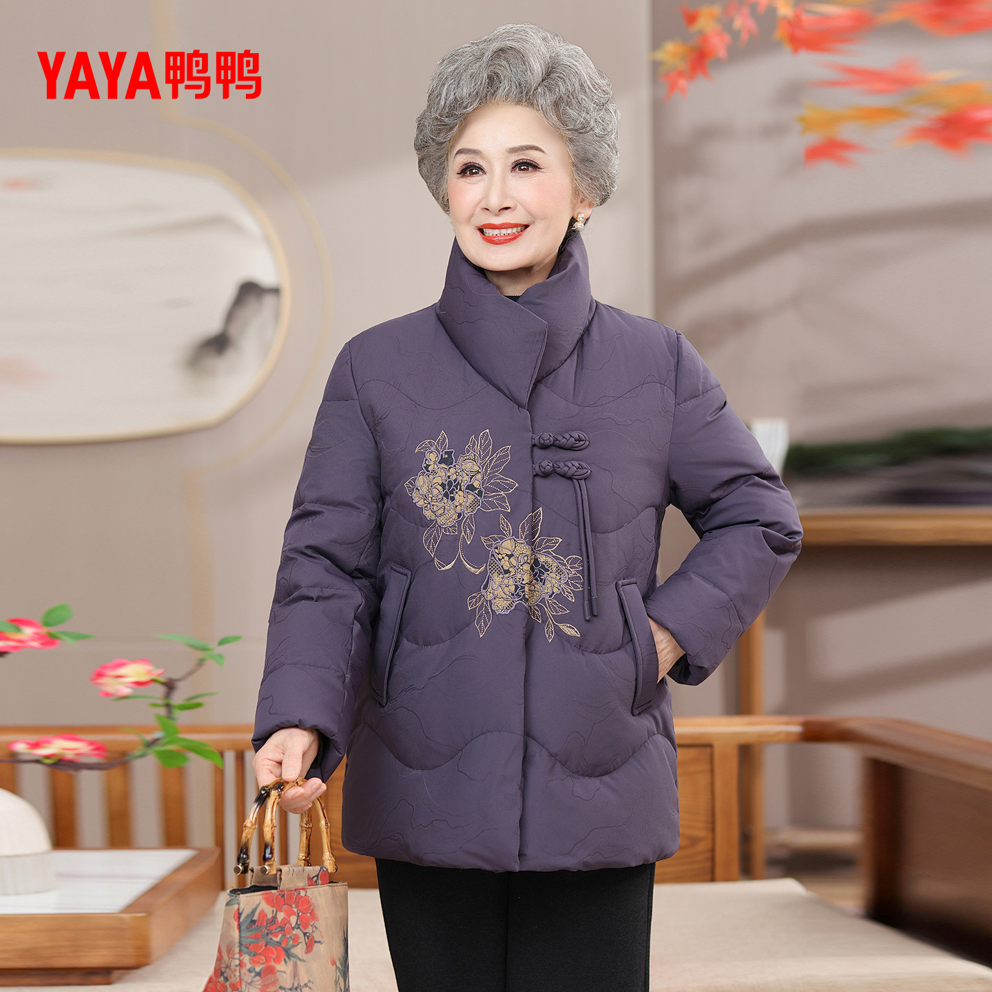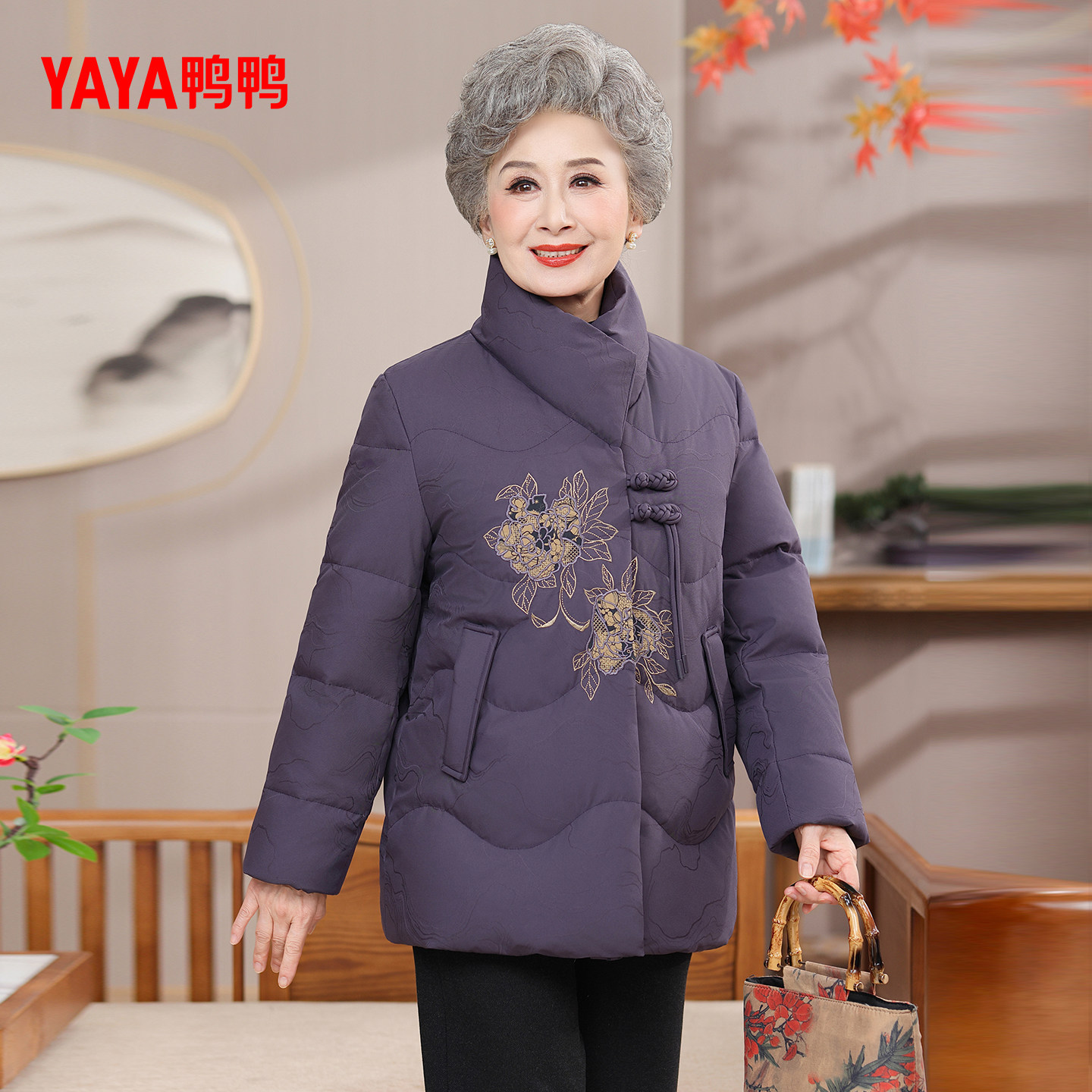 鸭鸭羽绒服女2025年冬季新款中老年短款立领保暖休闲妈妈装外套Y