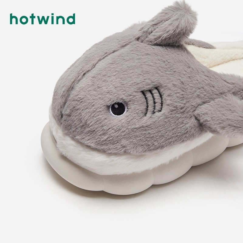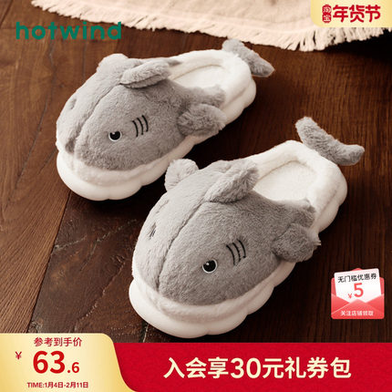 热风男鞋23冬新款男士时尚家居鞋可爱卡通厚底棉拖鞋短毛绒拖鞋男