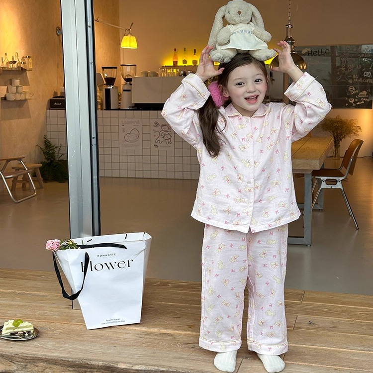 春秋新款男女童家居服套装两件套儿童爆款中大童卡通印花睡衣空调