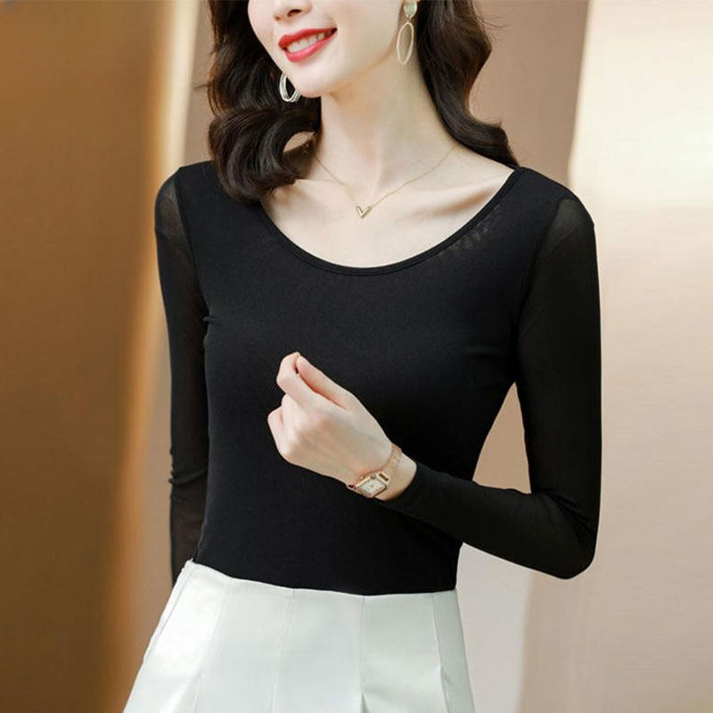 2024春秋新款女装网纱打底衫女