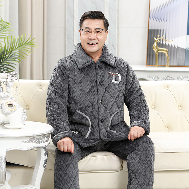 亿美希男士珊瑚绒夹棉中老年睡衣
