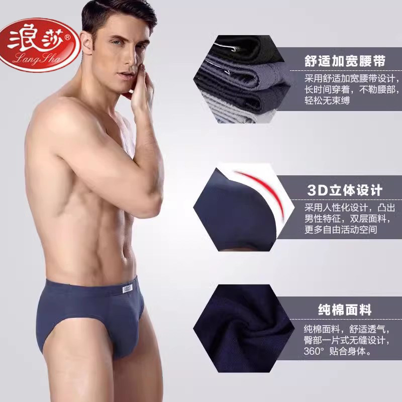 浪莎男士三角纯棉内裤4条浪莎男