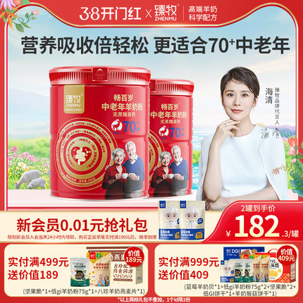 臻牧小分子畅百岁70+中老年羊奶粉官方旗舰店正品高钙富硒五0蔗糖