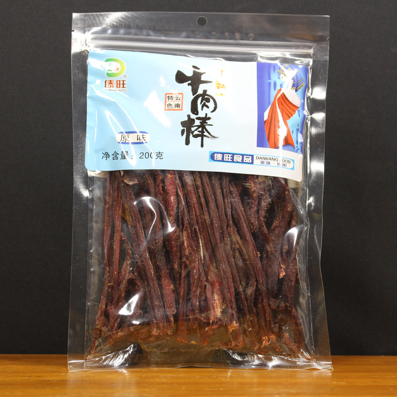 傣旺香草牛肉棒牛肉干200g云南特产德宏牛干巴火烧干巴原味香辣味