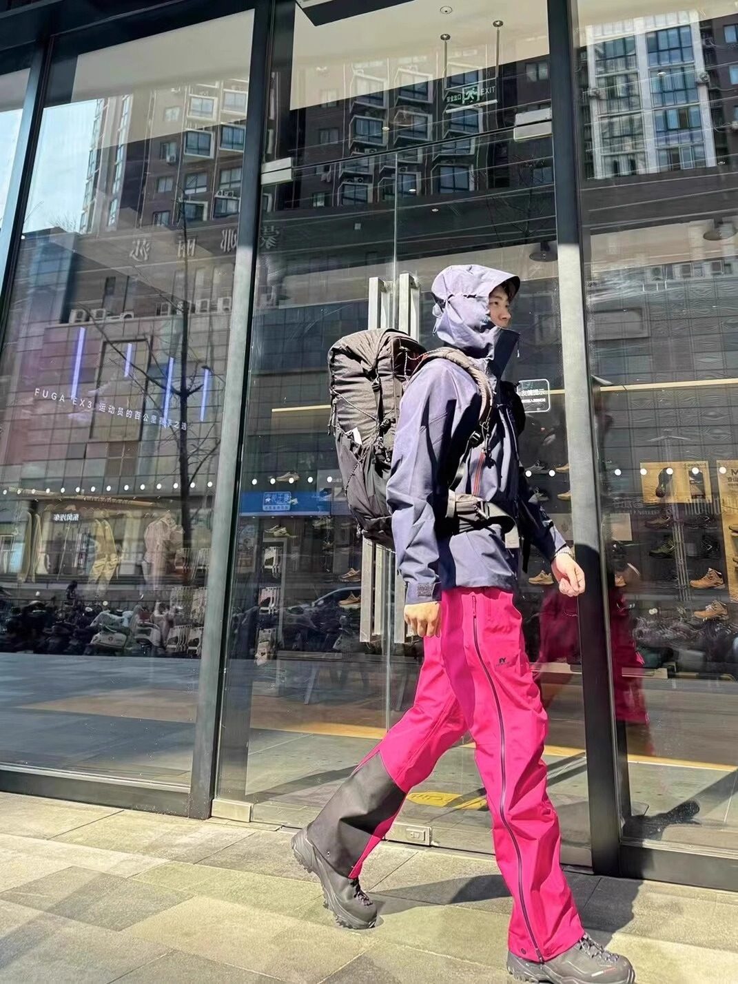 卡盛玫红色冲锋裤女款2026新款速干防水防风情侣登山徒步工装裤子