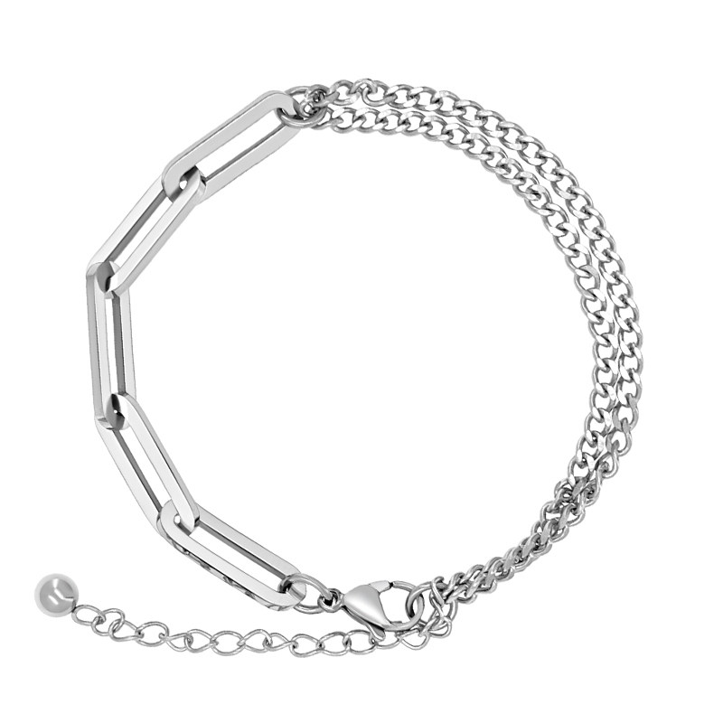 【黑度官方】不过敏日韩简约潮流嘻哈拼接双层设计男女款钛钢手链