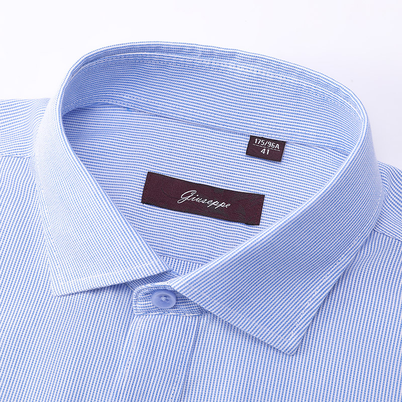 乔治白春秋季男士免烫长袖衬衫商务职场纯棉衬衣蓝条纹工作服上衣