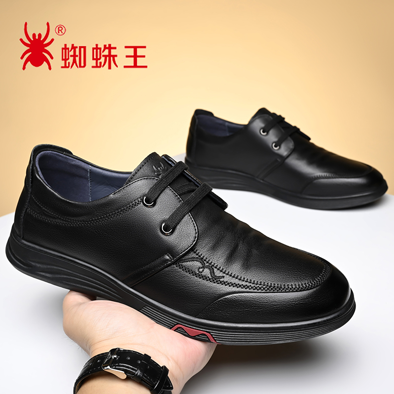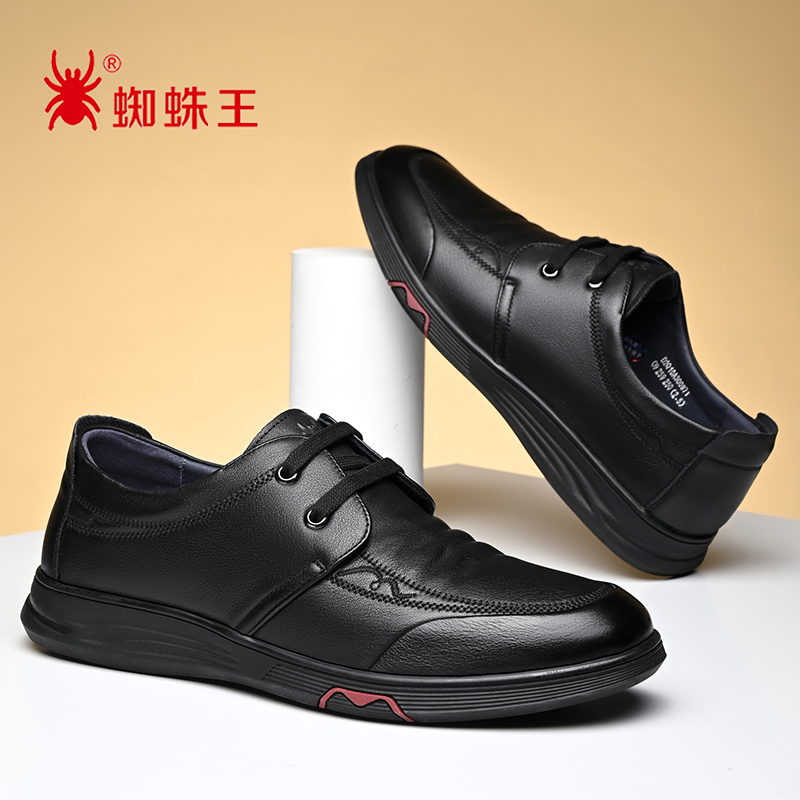 正品蜘蛛王头层牛皮休闲皮鞋