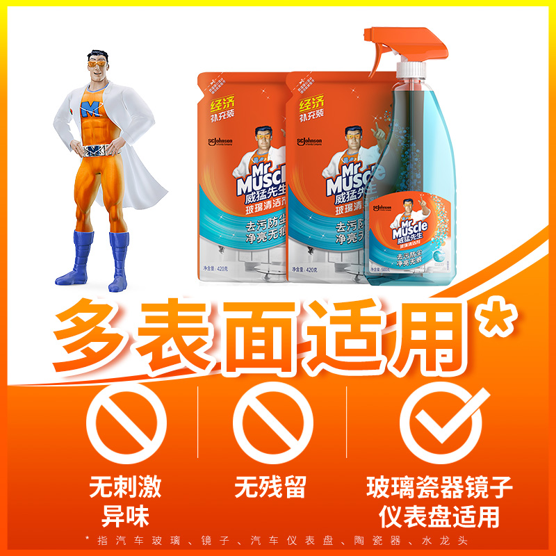 威猛先生擦玻璃水洗浴室玻璃清洁剂家用淋浴房擦窗喷雾强力去污垢