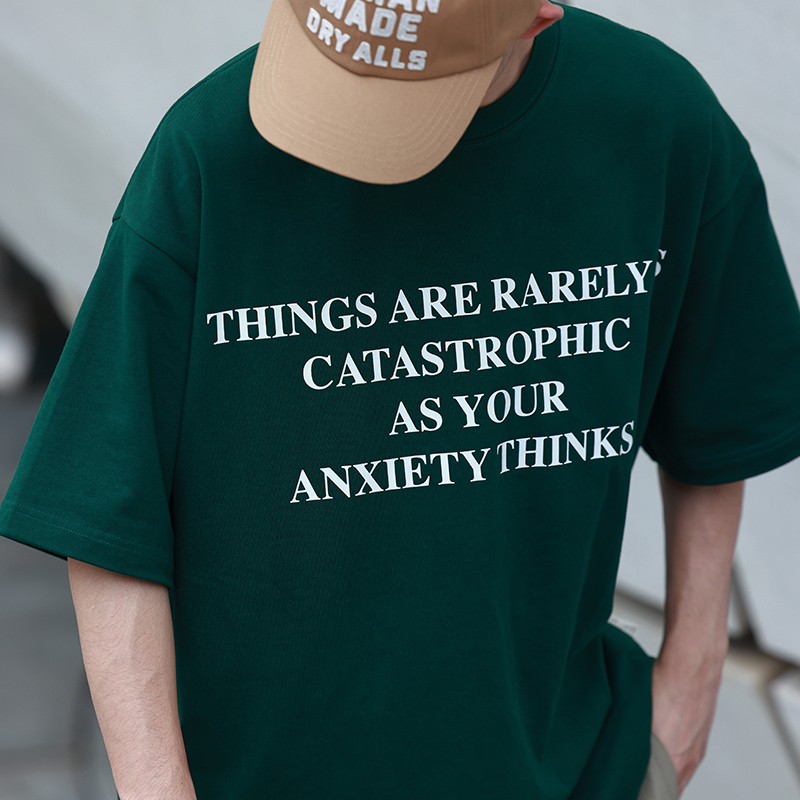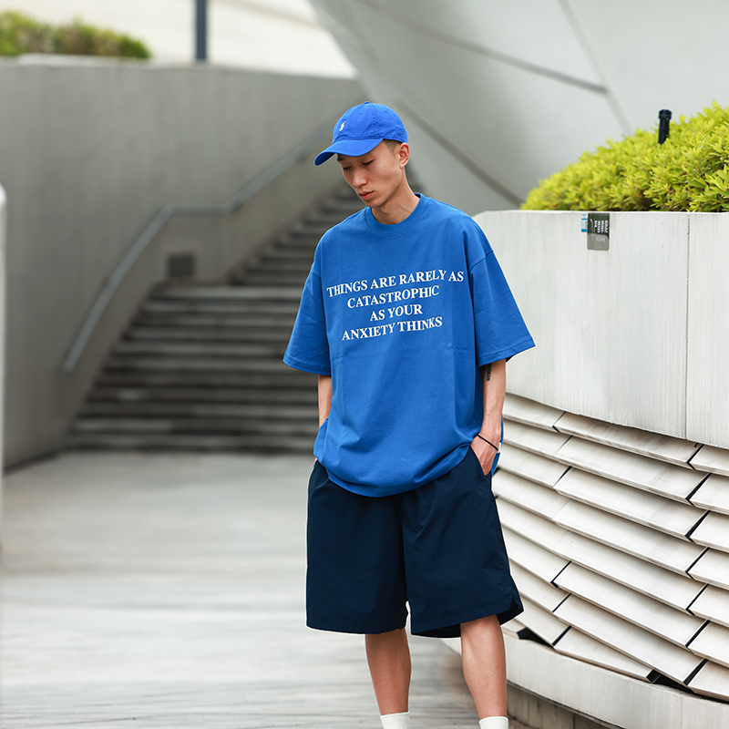 PINSKTBS 多色字母logo印花圆领短袖T恤男宽松休闲日系纯棉上衣