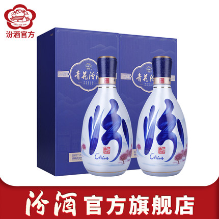 官方旗舰店山西杏花村汾酒53度青花26汾酒500ml*2瓶白酒盒装送礼