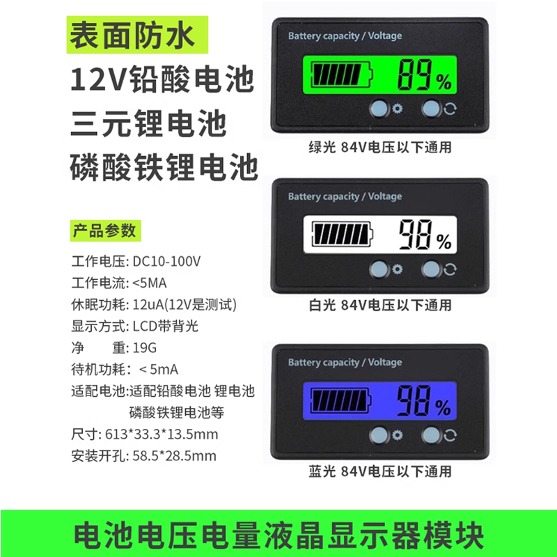 防水电压表电量表锂电池电瓶电动车液晶精准电量显示器双显电流