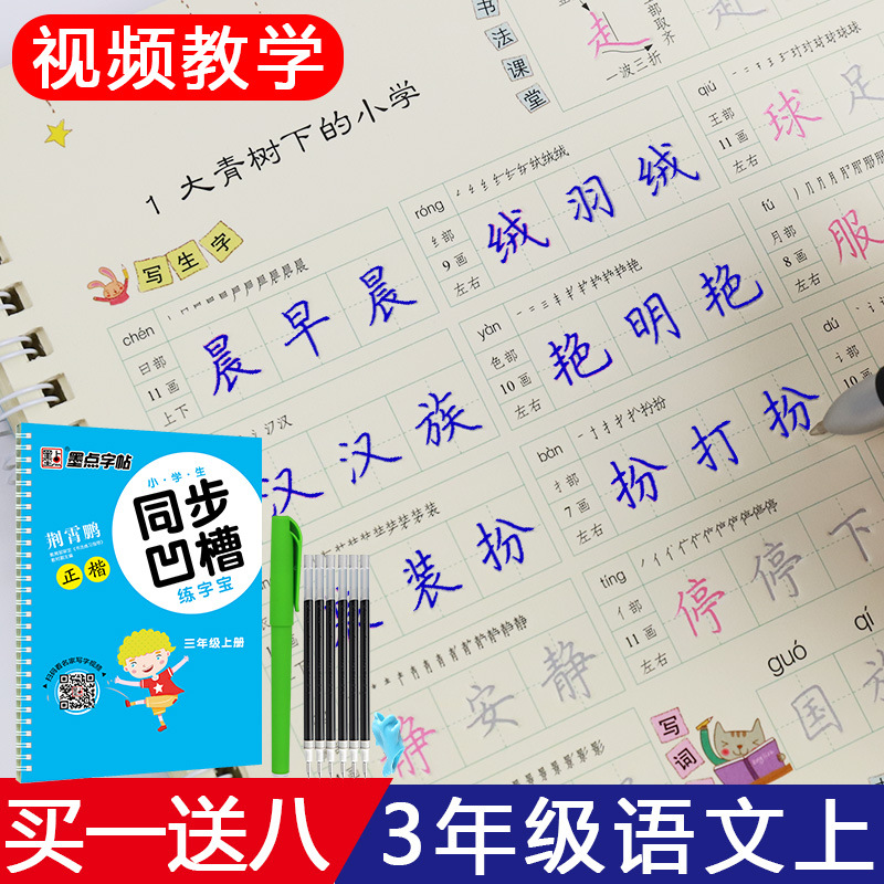 三年级字帖上册小学生语文课本同步课课练凹槽楷书练字板人教版3年级上册魔幻练字帖儿童练字本正楷硬笔字帖