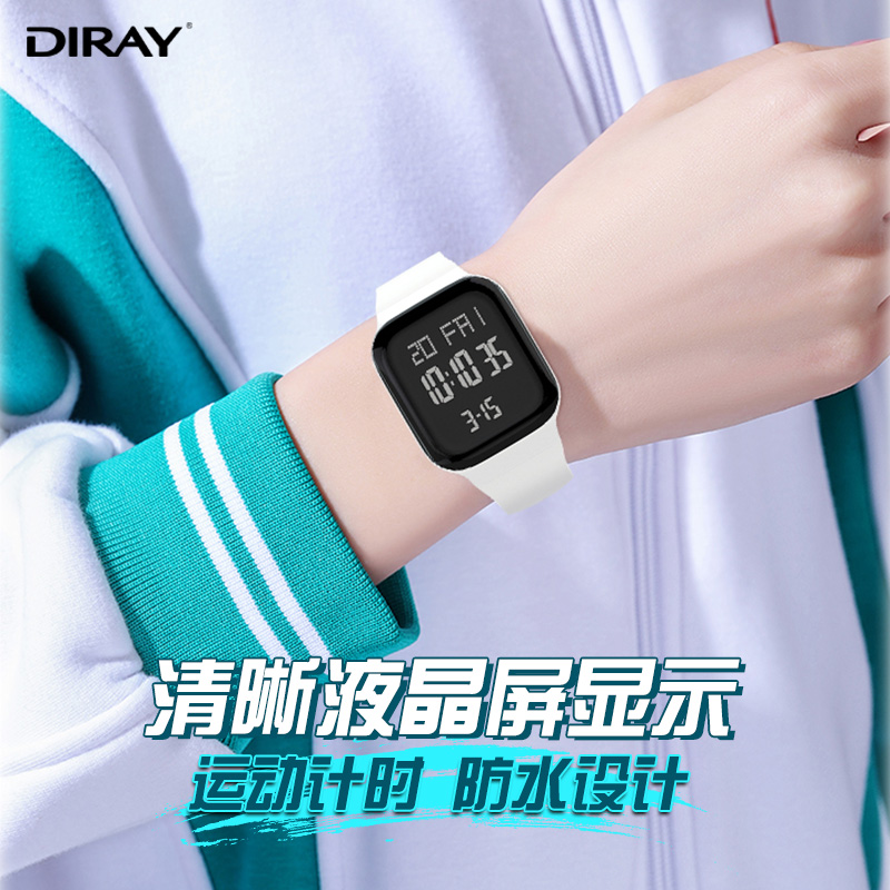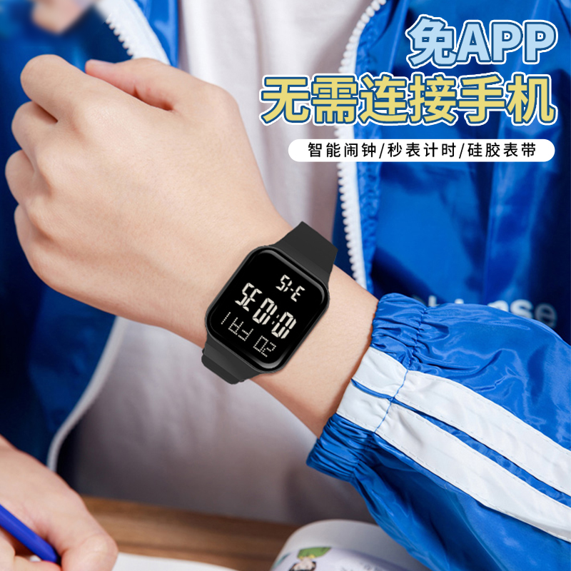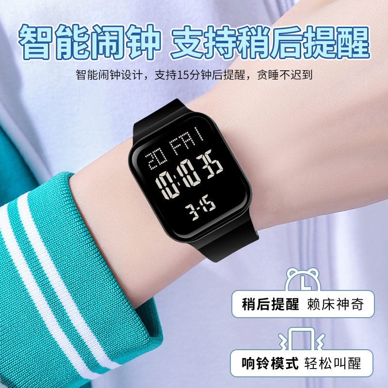电子表初高中生青少年运动夜光防水闹钟报时多功能男女孩方形手表