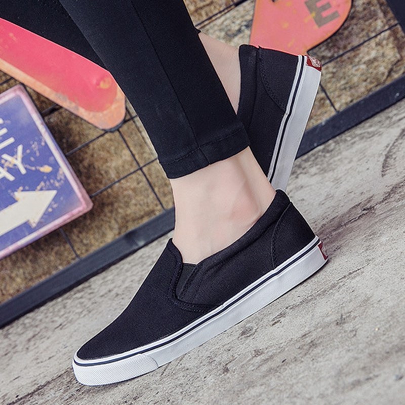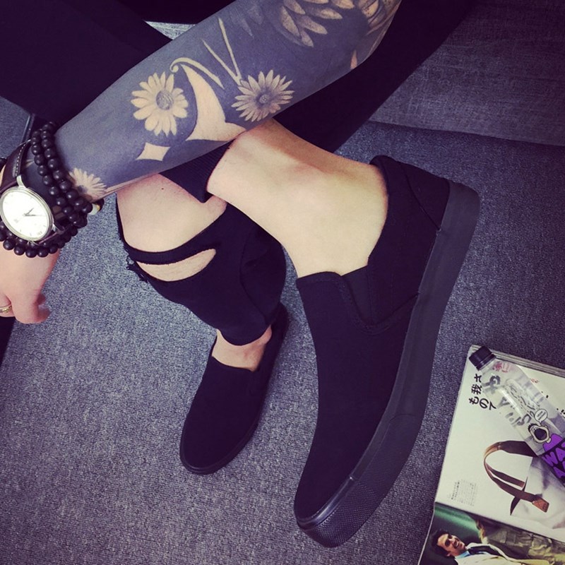 四季帆布鞋男鞋懒人全黑鞋男休闲纯色套脚一脚蹬大码鞋平底工作鞋