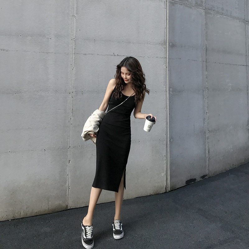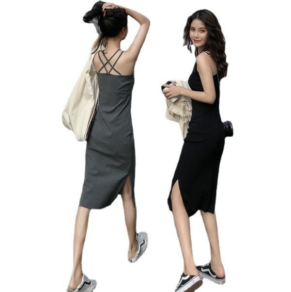 中长款吊带连衣裙外穿夏季2025年新款女开叉气质显瘦内搭打底
