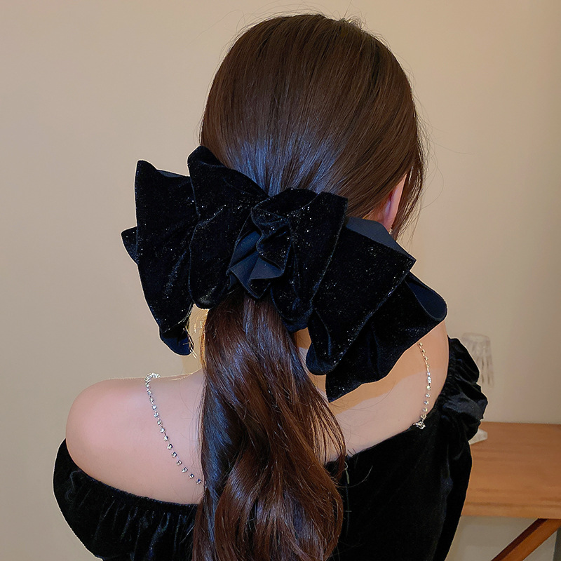 复古丝绒闪闪发夹高级感弹簧夹黑色马尾发饰超大号蝴蝶结头饰法式