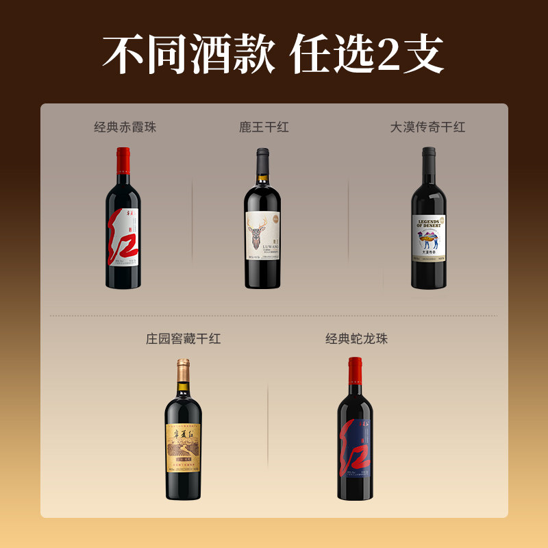 限量体验68元任选2瓶宁夏红沙坡头贺兰山东麓红酒干红葡萄酒750ml
