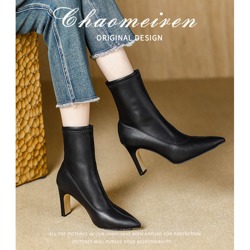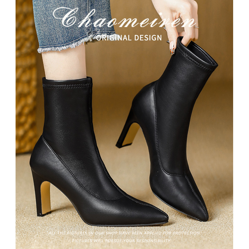 尖头高跟气质显瘦弹力单靴马丁靴