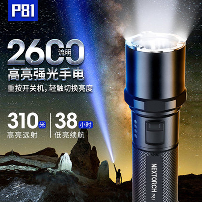 纳丽德P81强光手电筒战术户外超亮远射可充电21700电池家用专用