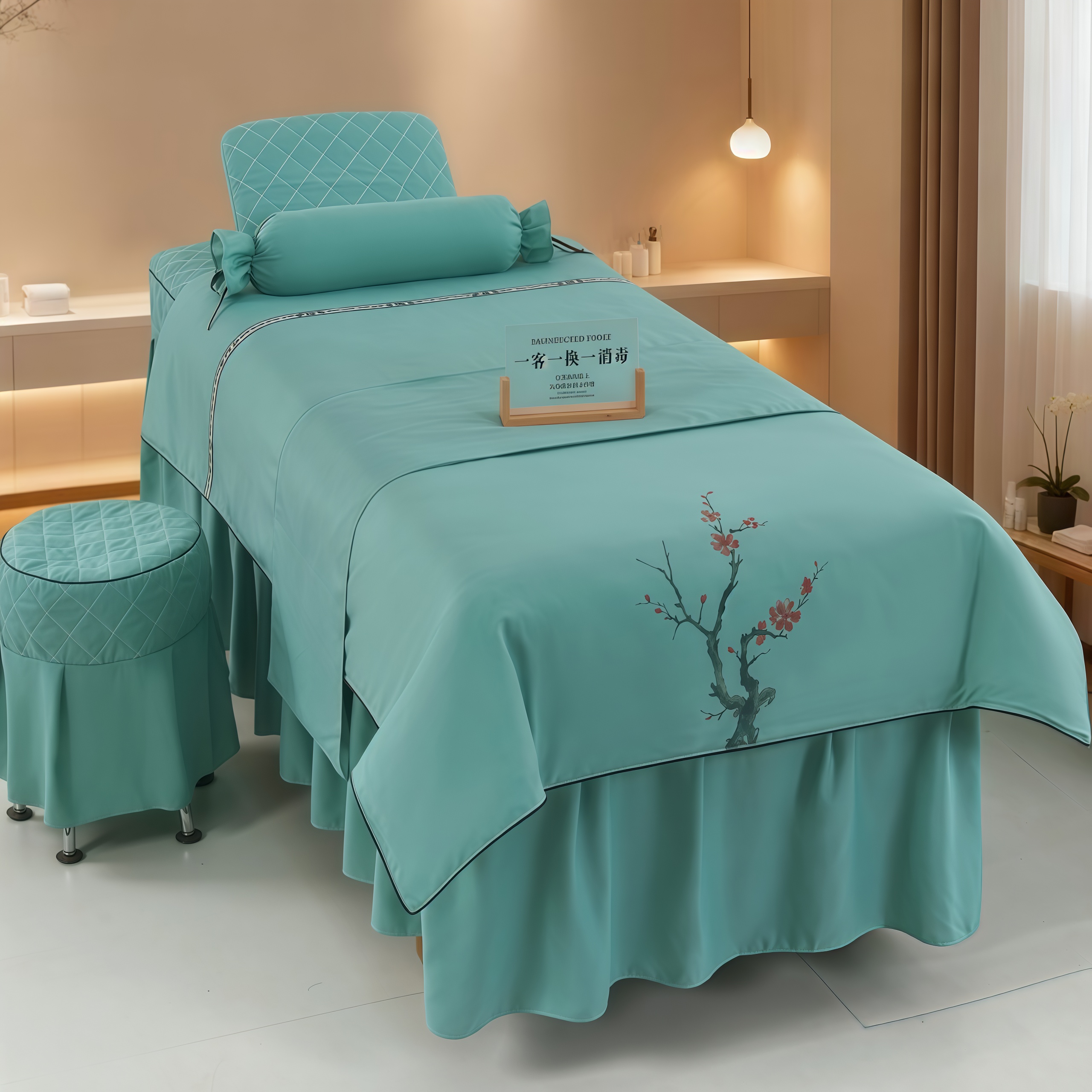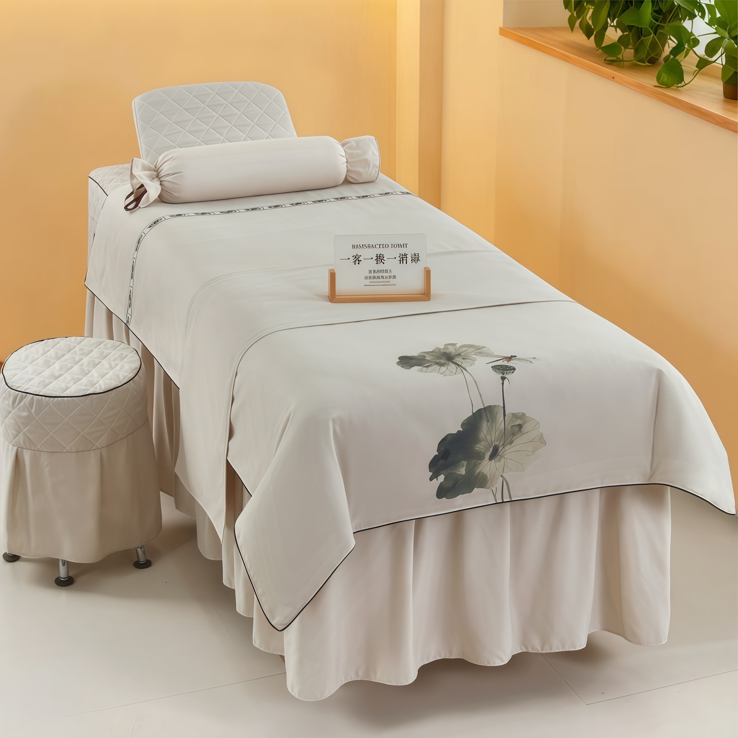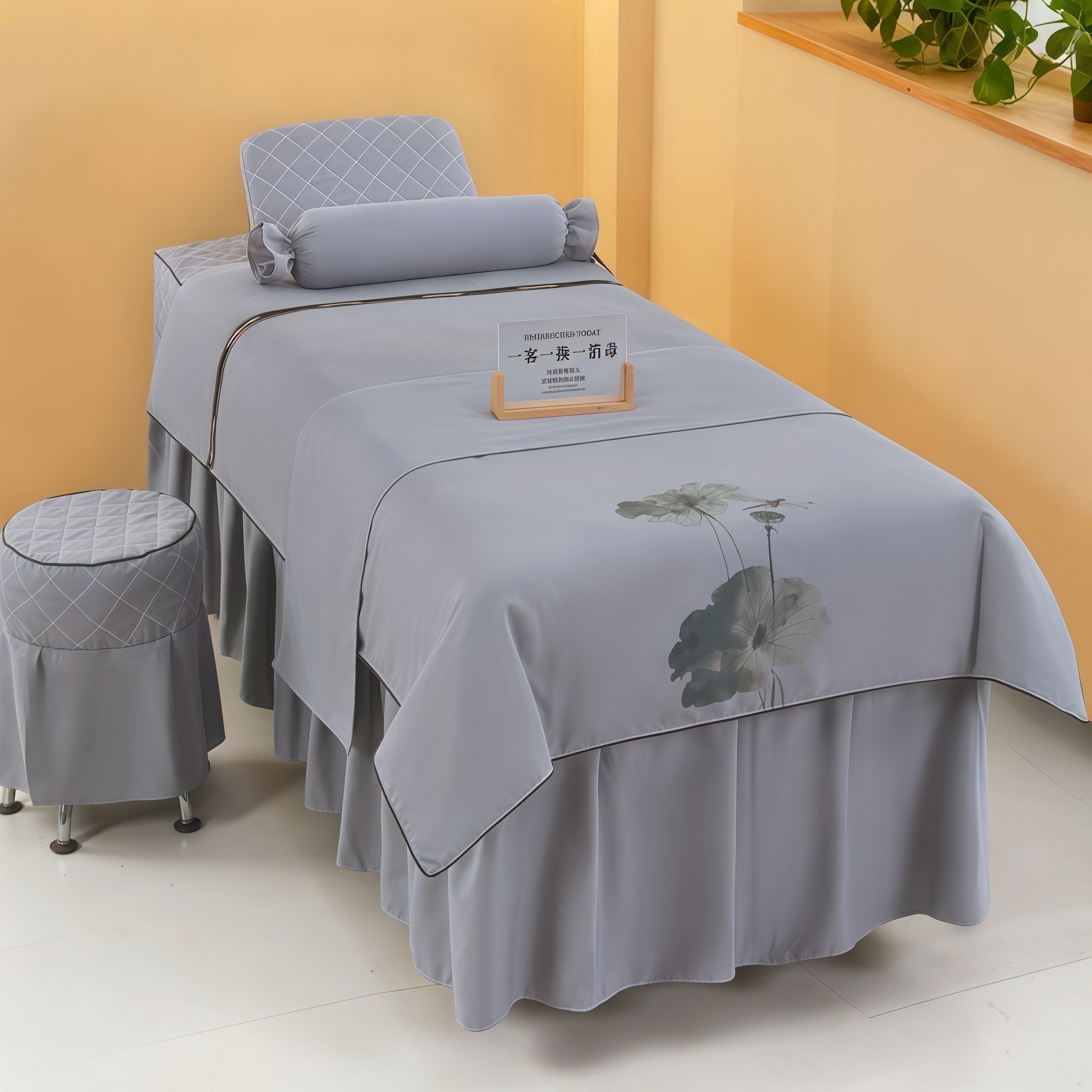 高档美容床罩四件套美容院简约欧式网红按摩轻奢全纯棉麻理疗床套