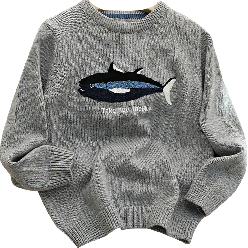 植绒小蓝鲸不起球 大厂货~男童圆领毛衣中大童针织衫宝宝纯棉线衣